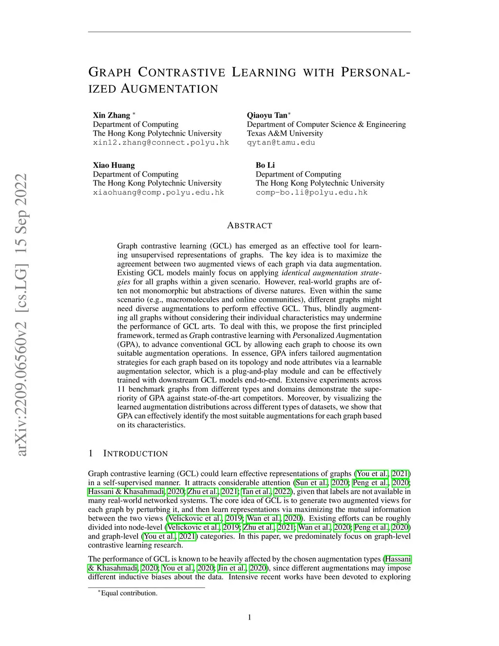 Graph Contrastive Learning with Personalized Augmentation