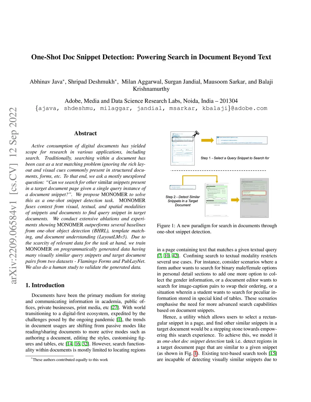 One-Shot Doc Snippet Detection: Powering Search in Document Beyond Text