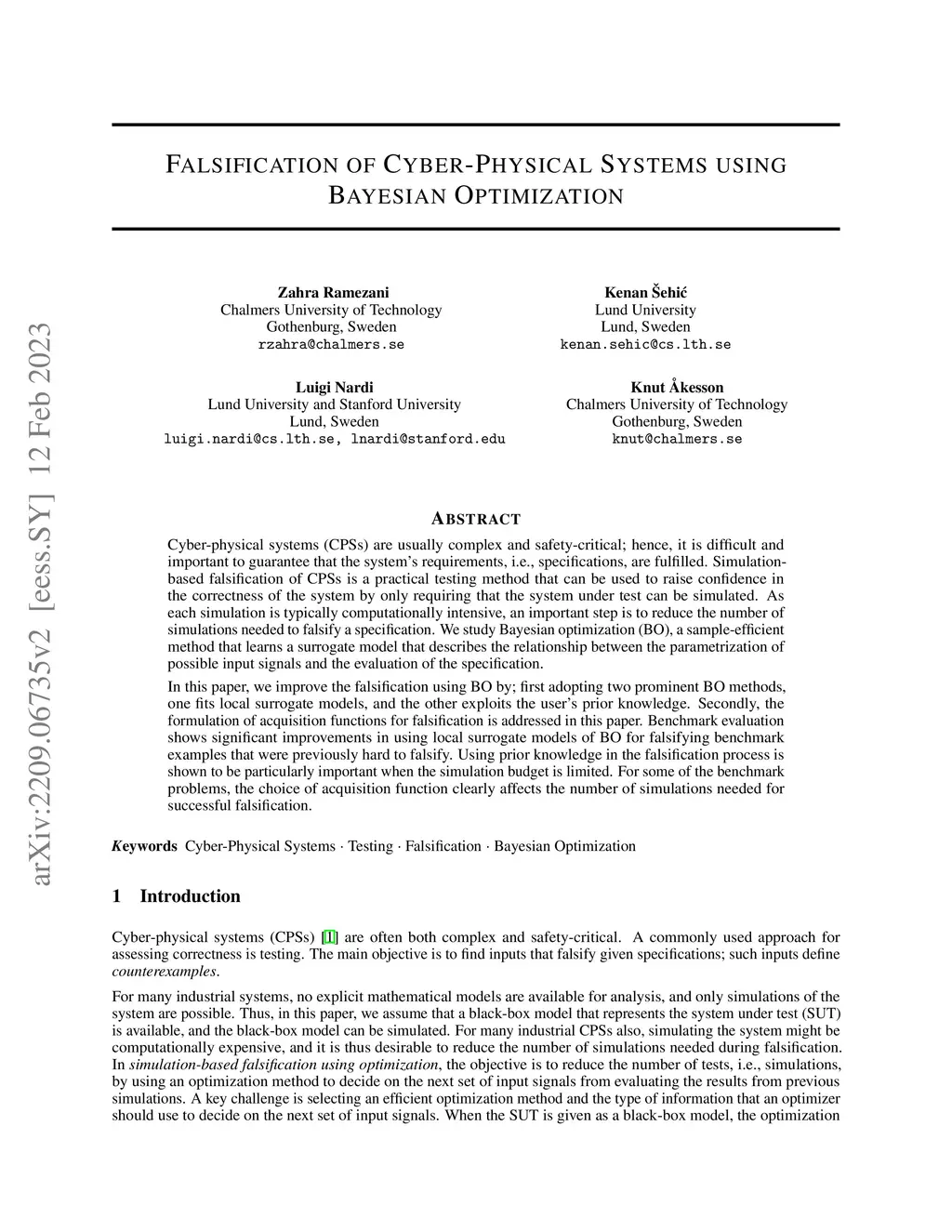 Falsification of Cyber-Physical Systems using Bayesian Optimization