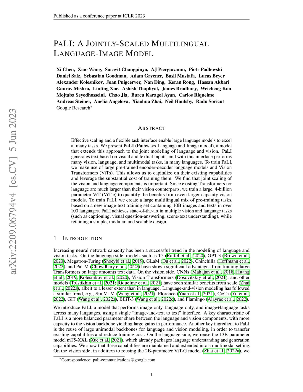 PaLI: A Jointly-Scaled Multilingual Language-Image Model