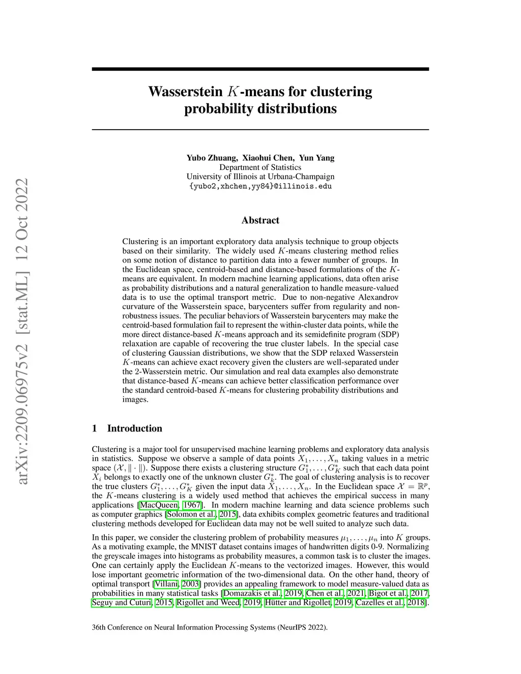 Clustering is an important exploratory data analysis technique to group objects based on their similarity. The widely used -means clustering method relies on some notion of distance to partition data into a fewer number of groups. In the Euclidean space, centroid-based and distance-based formulations of the -means are equivalent. In modern machine learning applications, data often arise as probability distributions and a natural generalization to handle measure-valued data is to use the optimal transport metric. Due to non-negative Alexandrov curvature of the Wasserstein space, barycenters suffer from regularity and non-robustness issues. The peculiar behaviors of Wasserstein barycenters may make the centroid-based formulation fail to represent the within-cluster data points, while the more direct distance-based -means approach and its semidefinite program (SDP) relaxation are capable of recovering the true cluster labels. In the special case of clustering Gaussian distributions, we show that the SDP relaxed Wasserstein -means can achieve exact recovery given the clusters are well-separated under the -Wasserstein metric. Our simulation and real data examples also demonstrate that distance-based -means can achieve better classification performance over the standard centroid-based -means for clustering probability distributions and images.