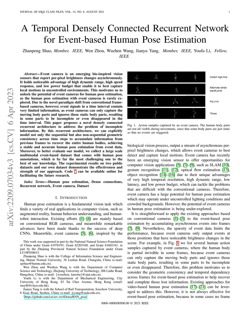 A Temporal Densely Connected Recurrent Network for Event-based Human
