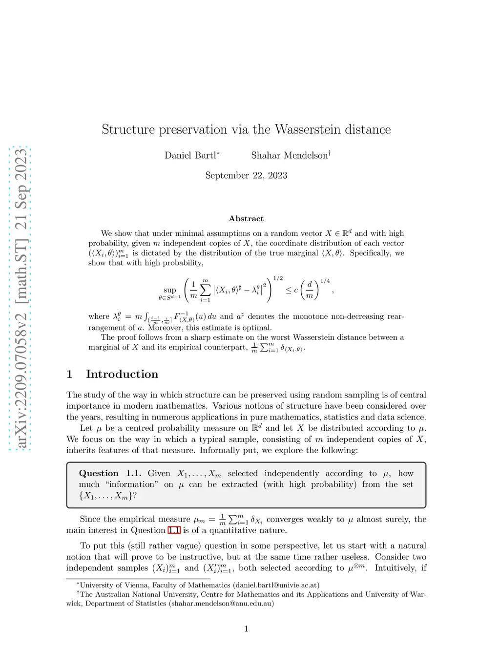We show that under minimal assumptions on a random vector and with high probability, given independent copies of , the coordinate distribution of each vector is dictated by the distribution of the true marginal . Specifically, we show that with high probability, \[\sup_{\theta \in S^{d-1}} \left( \frac{1}{m}\sum_{i=1}^m \left|\langle X_i,\theta \rangle^\sharp - \lambda^\theta_i \right|^2 \right)^{1/2} \leq c \left( \frac{d}{m} \right)^{1/4},\] where and denotes the monotone non-decreasing rearrangement of . Moreover, this estimate is optimal. The proof follows from a sharp estimate on the worst Wasserstein distance between a marginal of and its empirical counterpart, .