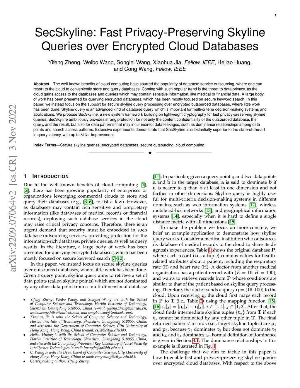 SecSkyline: Fast Privacy-Preserving Skyline Queries over Encrypted Cloud