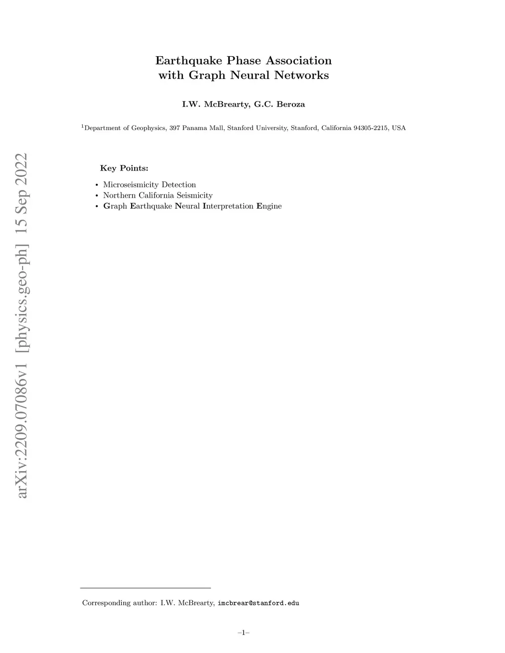Seismic phase association connects earthquake arrival time measurements to their causative sources. Effective association must determine the number of discrete events, their location and origin times, and it must differentiate real arrivals from measurement artifacts. The advent of deep learning pickers, which provide high rates of picks from closely overlapping small magnitude earthquakes, motivates revisiting the phase association problem and approaching it using the methods of deep learning. We have developed a Graph Neural Network associator that simultaneously predicts both source space-time localization, and discrete source-arrival association likelihoods. The method is applicable to arbitrary geometry, time-varying seismic networks of hundreds of stations, and is robust to high rates of sources and input picks with variable noise and quality. Our Graph Earthquake Neural Interpretation Engine (GENIE) uses one graph to represent the station set and another to represent the spatial source region. GENIE learns relationships from data in this combined representation that enable it to determine robust source and source-arrival associations. We train on synthetic data, and test our method on real data from the Northern California (NC) seismic network using input generated by the PhaseNet deep learning phase picker. We successfully re-detect ~96% of all events M>1 reported by the USGS during 500 random days between 20002022. Over a 100-day continuous interval of processing in 20172018, we detect ~4.2x the number of events reported by the USGS. Our new events have small magnitude estimates below the magnitude of completeness of the USGS catalog, and are located close to the active faults and quarries in the region. Our results demonstrate that GENIE can effectively solve the association problem under complex seismic monitoring conditions.