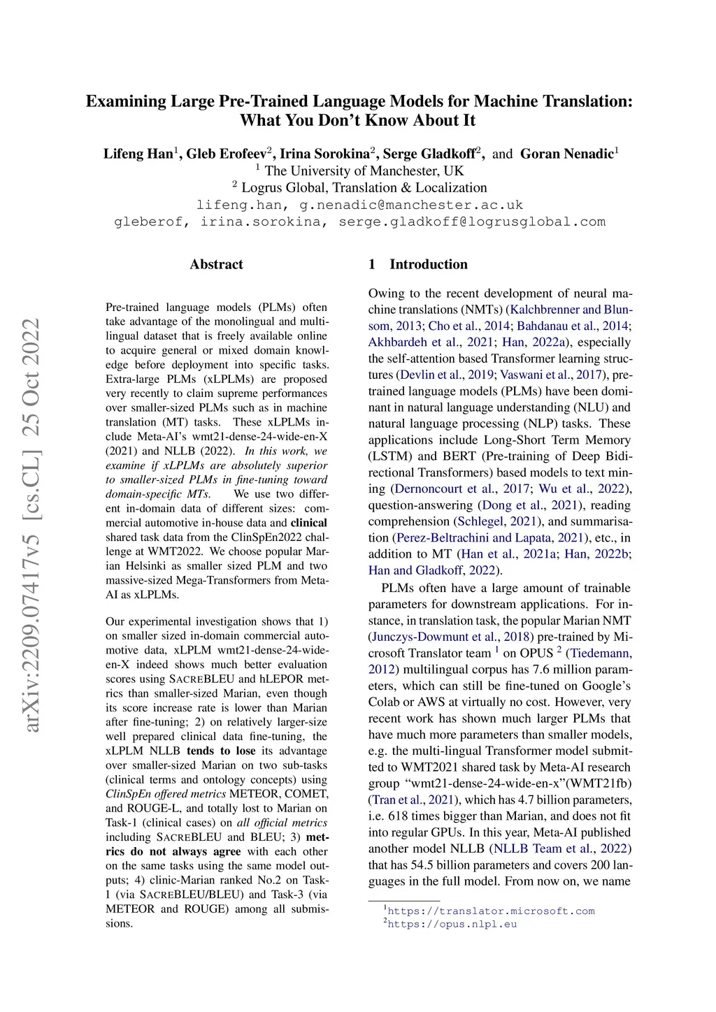 Examining Large Pre-Trained Language Models for Machine Translation: