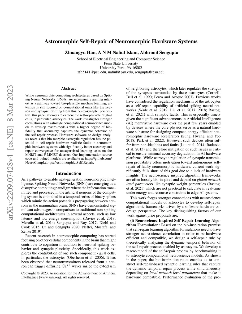 Astromorphic Self-Repair of Neuromorphic Hardware Systems