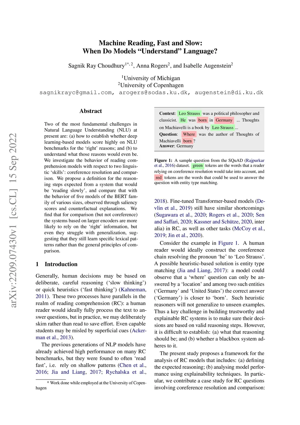 Machine Reading, Fast and Slow: When Do Models "Understand" Language?