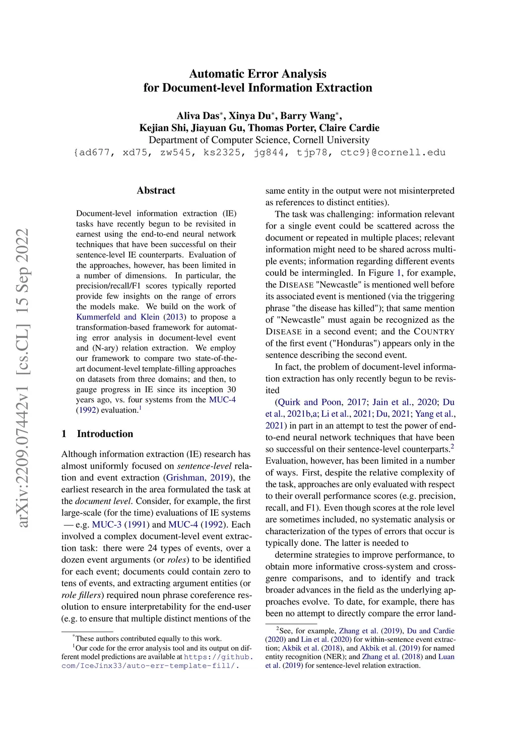 Automatic Error Analysis for Document-level Information Extraction