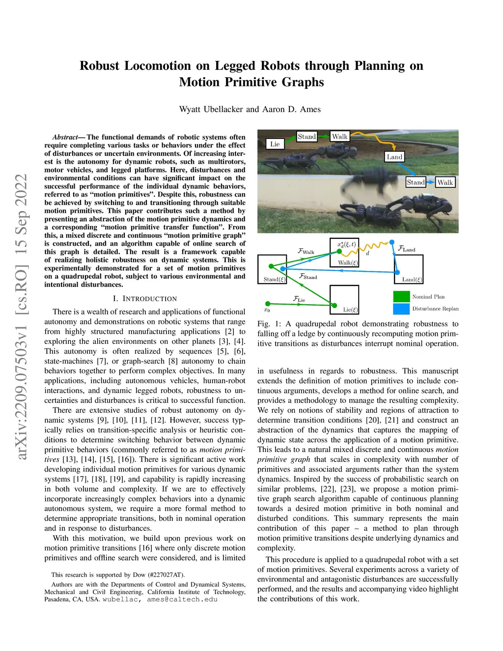 The functional demands of robotic systems often require completing various tasks or behaviors under the effect of disturbances or uncertain environments. Of increasing interest is the autonomy for dynamic robots, such as multirotors, motor vehicles, and legged platforms. Here, disturbances and environmental conditions can have significant impact on the successful performance of the individual dynamic behaviors, referred to as "motion primitives". Despite this, robustness can be achieved by switching to and transitioning through suitable motion primitives. This paper contributes such a method by presenting an abstraction of the motion primitive dynamics and a corresponding "motion primitive transfer function". From this, a mixed discrete and continuous "motion primitive graph" is constructed, and an algorithm capable of online search of this graph is detailed. The result is a framework capable of realizing holistic robustness on dynamic systems. This is experimentally demonstrated for a set of motion primitives on a quadrupedal robot, subject to various environmental and intentional disturbances.