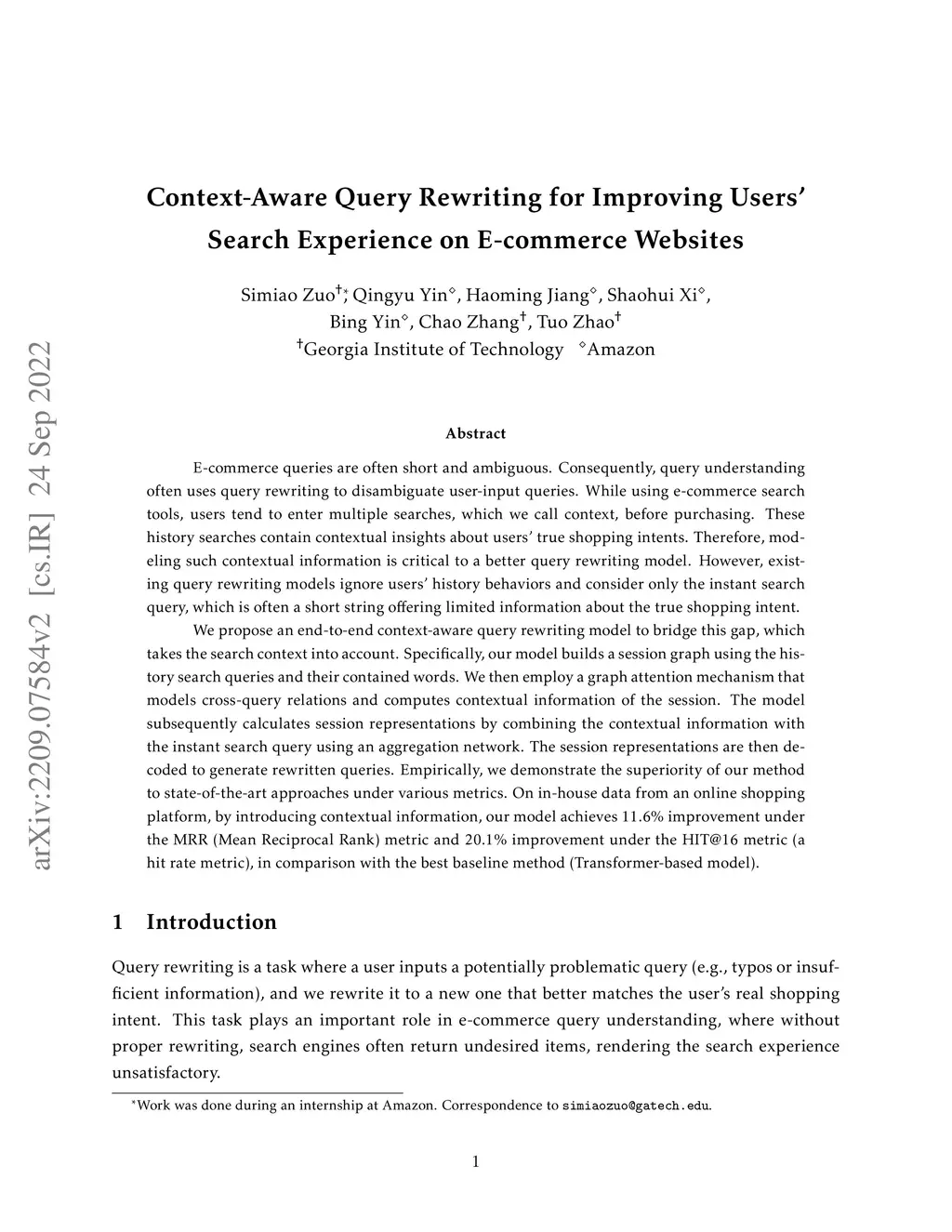 Context-Aware Query Rewriting for Improving Users' Search Experience on