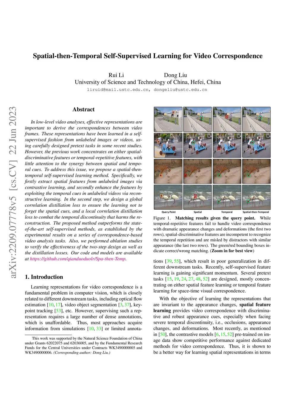 Spatial-then-Temporal Self-Supervised Learning for Video Correspondence