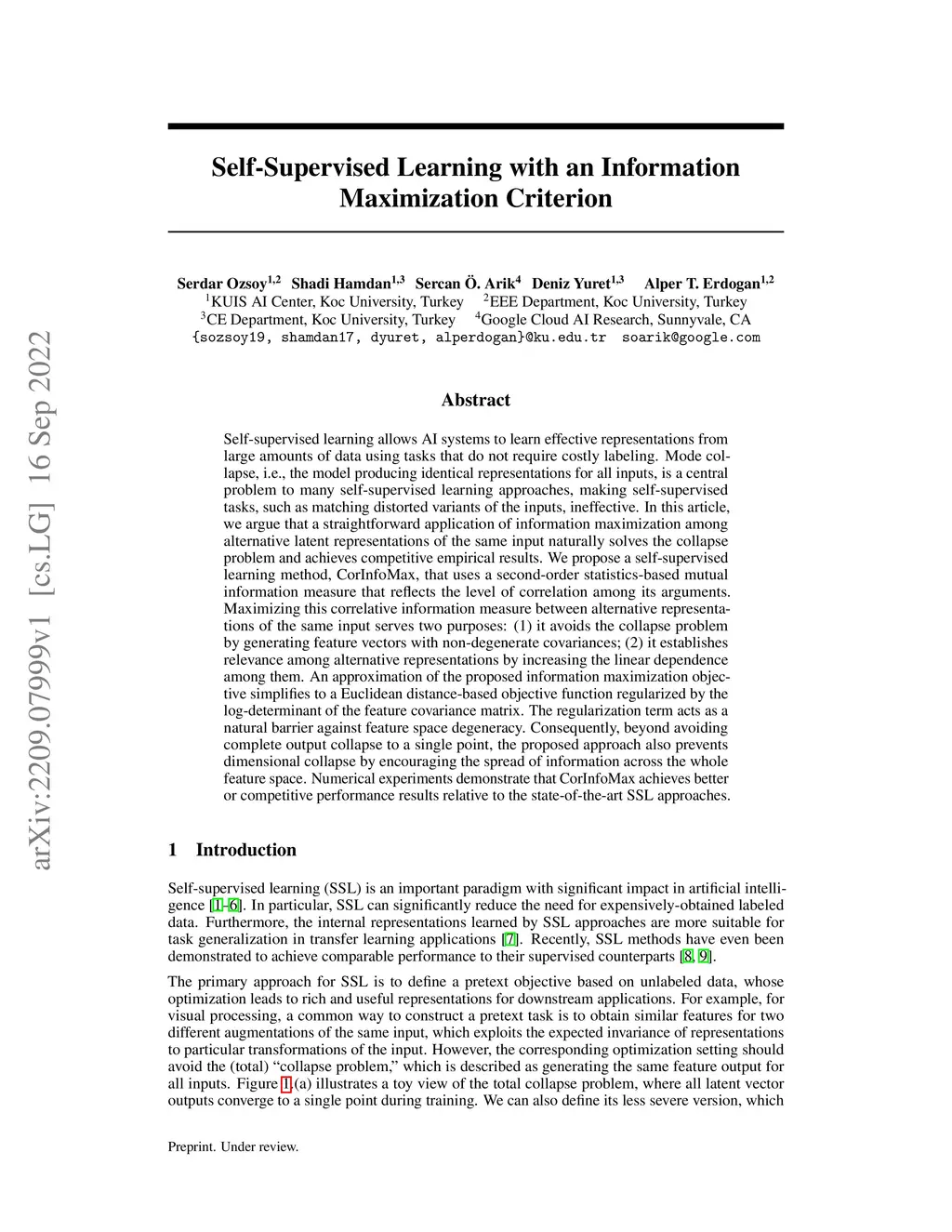 Self-Supervised Learning with an Information Maximization Criterion