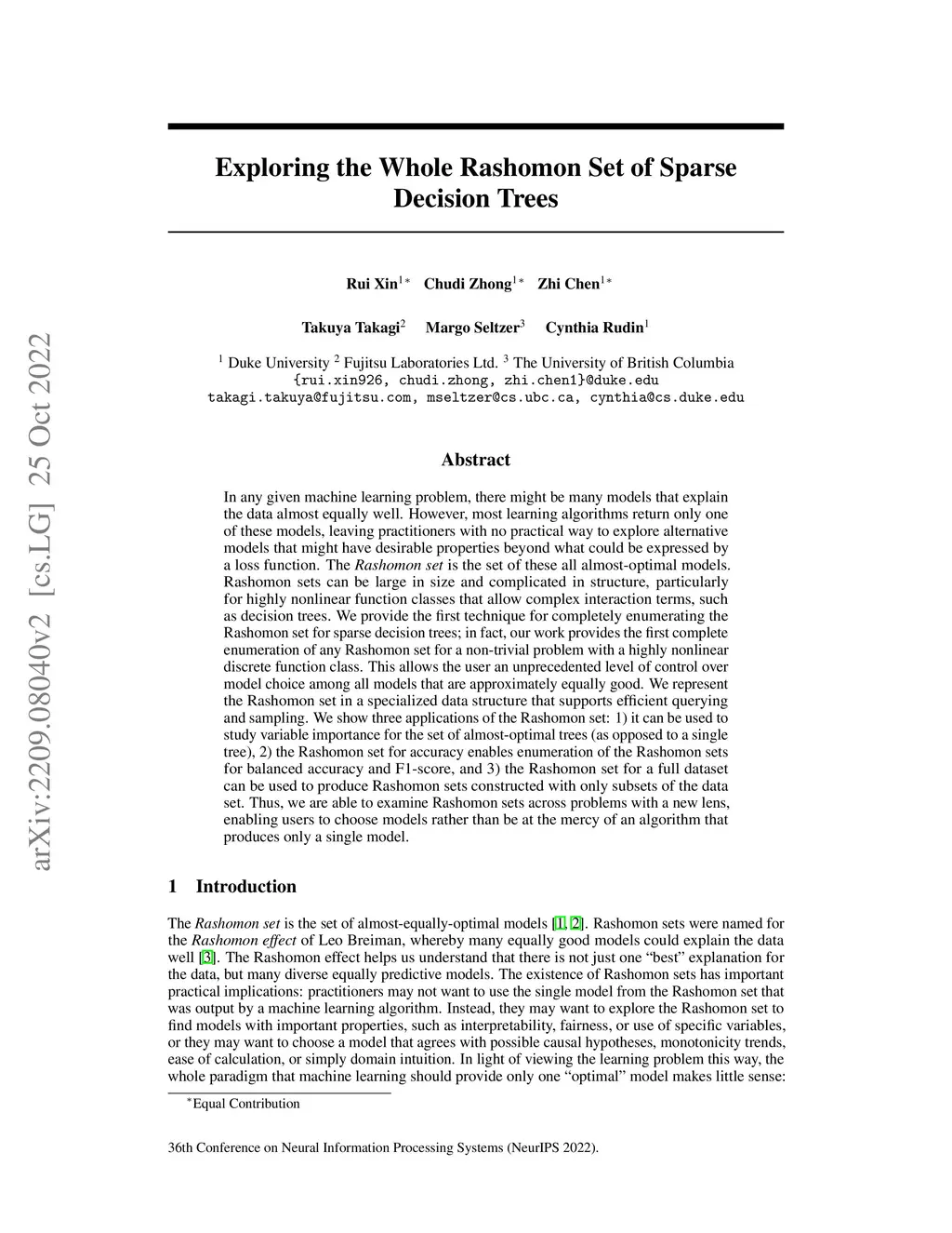 In any given machine learning problem, there may be many models that could explain the data almost equally well. However, most learning algorithms return only one of these models, leaving practitioners with no practical way to explore alternative models that might have desirable properties beyond what could be expressed within a loss function. The Rashomon set is the set of these all almost-optimal models. Rashomon sets can be extremely complicated, particularly for highly nonlinear function classes that allow complex interaction terms, such as decision trees. We provide the first technique for completely enumerating the Rashomon set for sparse decision trees; in fact, our work provides the first complete enumeration of any Rashomon set for a non-trivial problem with a highly nonlinear discrete function class. This allows the user an unprecedented level of control over model choice among all models that are approximately equally good. We represent the Rashomon set in a specialized data structure that supports efficient querying and sampling. We show three applications of the Rashomon set: 1) it can be used to study variable importance for the set of almost-optimal trees (as opposed to a single tree), 2) the Rashomon set for accuracy enables enumeration of the Rashomon sets for balanced accuracy and F1-score, and 3) the Rashomon set for a full dataset can be used to produce Rashomon sets constructed with only subsets of the data set. Thus, we are able to examine Rashomon sets across problems with a new lens, enabling users to choose models rather than be at the mercy of an algorithm that produces only a single model.