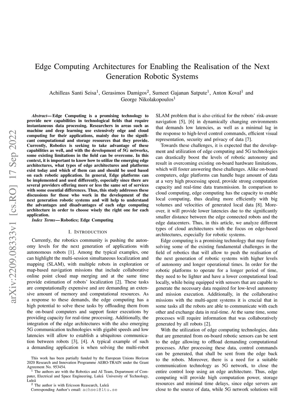 Edge Computing is a promising technology to provide new capabilities in technological fields that require instantaneous data processing. Researchers in areas such as machine and deep learning use extensively edge and cloud computing for their applications, mainly due to the significant computational and storage resources that they provide. Currently, Robotics is seeking to take advantage of these capabilities as well, and with the development of 5G networks, some existing limitations in the field can be overcome. In this context, it is important to know how to utilize the emerging edge architectures, what types of edge architectures and platforms exist today and which of them can and should be used based on each robotic application. In general, Edge platforms can be implemented and used differently, especially since there are several providers offering more or less the same set of services with some essential differences. Thus, this study addresses these discussions for those who work in the development of the next generation robotic systems and will help to understand the advantages and disadvantages of each edge computing architecture in order to choose wisely the right one for each application.