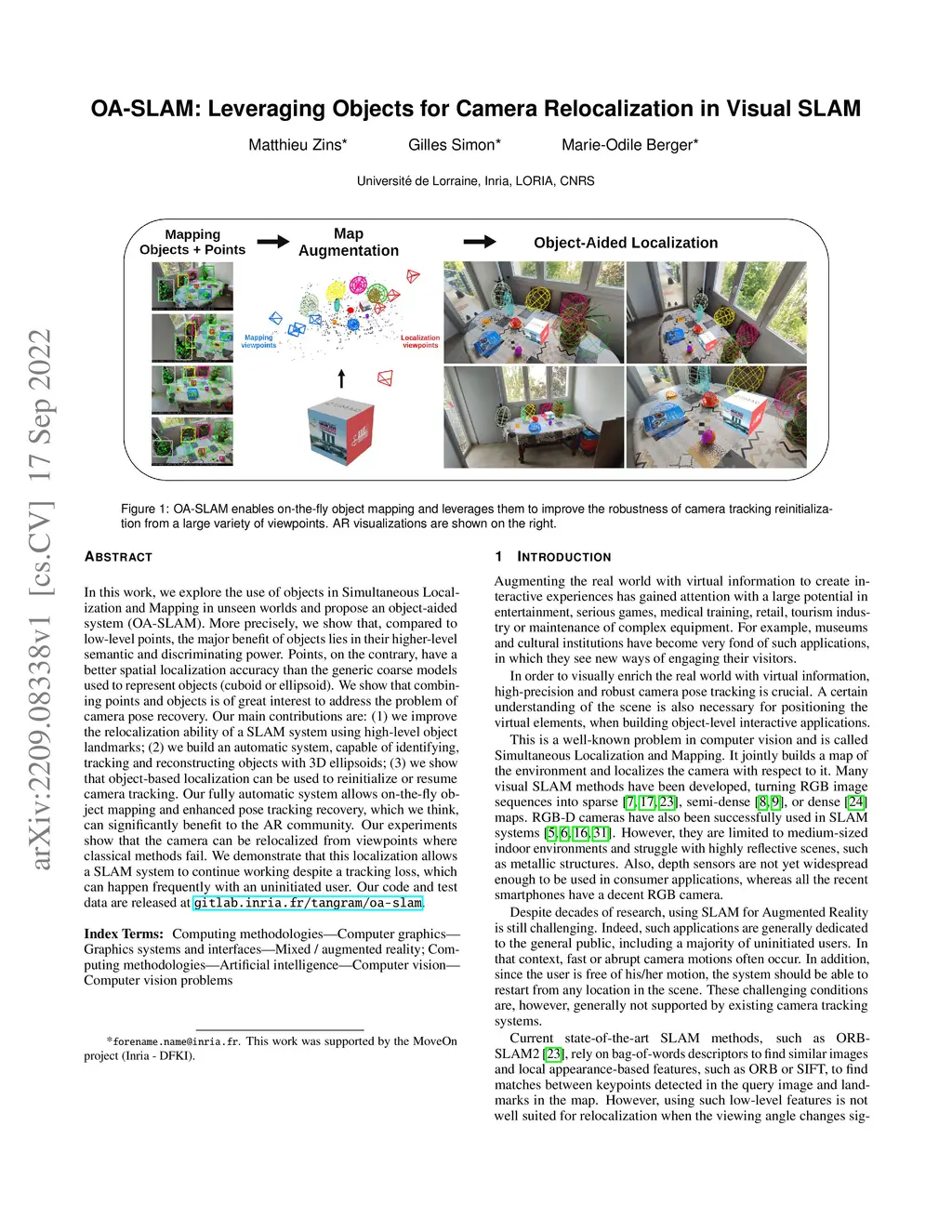 OA-SLAM: Leveraging Objects for Camera Relocalization in Visual SLAM