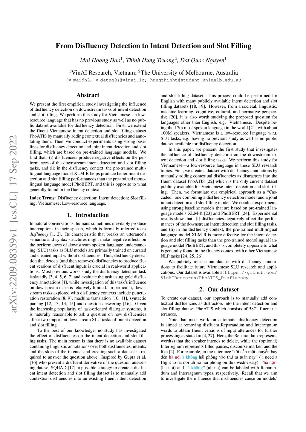 We present the first empirical study investigating the influence of disfluency detection on downstream tasks of intent detection and slot filling. We perform this study for Vietnamese -- a low-resource language that has no previous study as well as no public dataset available for disfluency detection. First, we extend the fluent Vietnamese intent detection and slot filling dataset PhoATIS by manually adding contextual disfluencies and annotating them. Then, we conduct experiments using strong baselines for disfluency detection and joint intent detection and slot filling, which are based on pre-trained language models. We find that: (i) disfluencies produce negative effects on the performances of the downstream intent detection and slot filling tasks, and (ii) in the disfluency context, the pre-trained multilingual language model XLM-R helps produce better intent detection and slot filling performances than the pre-trained monolingual language model PhoBERT, and this is opposite to what generally found in the fluency context.