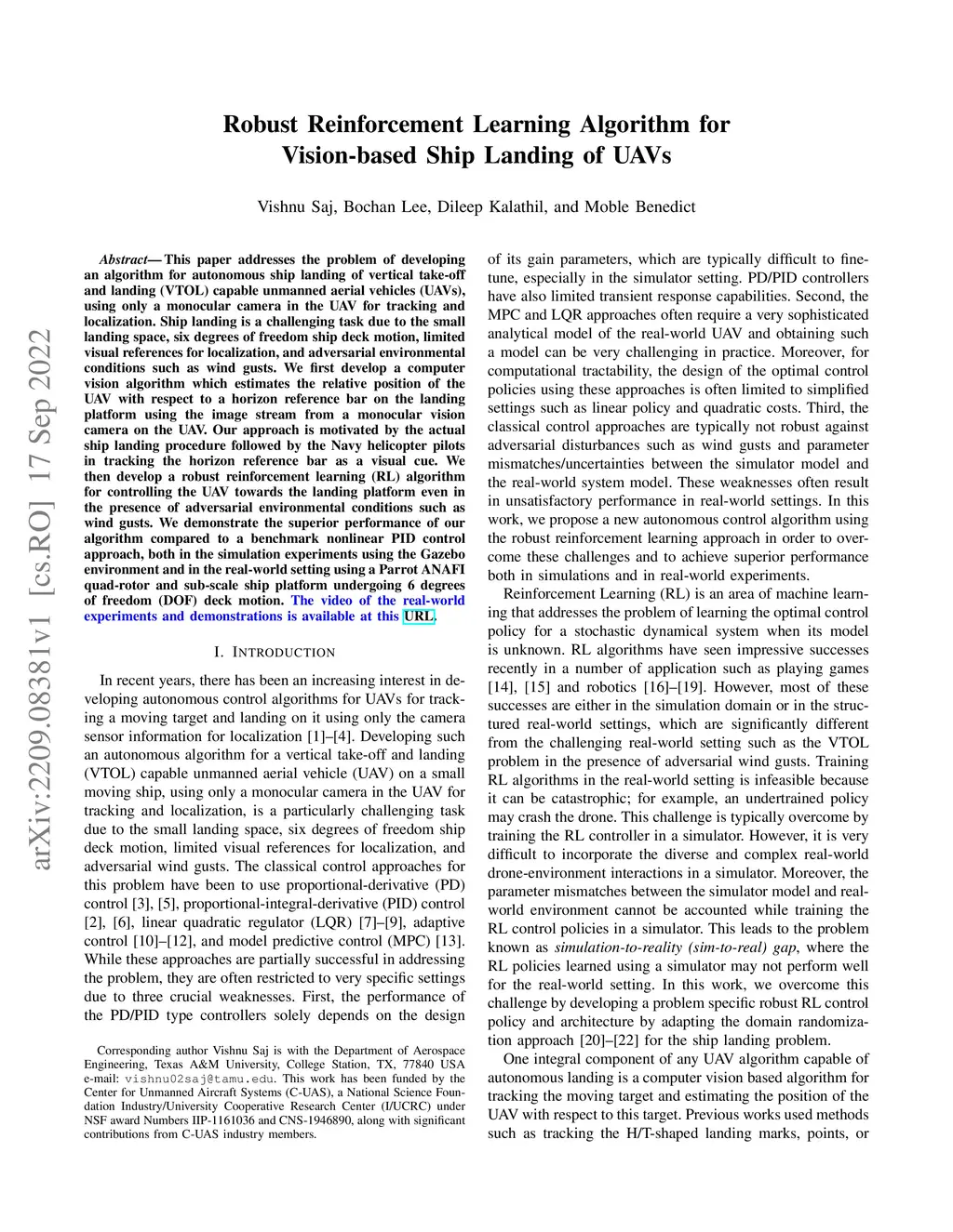 Robust Reinforcement Learning Algorithm for Vision-based Ship Landing of