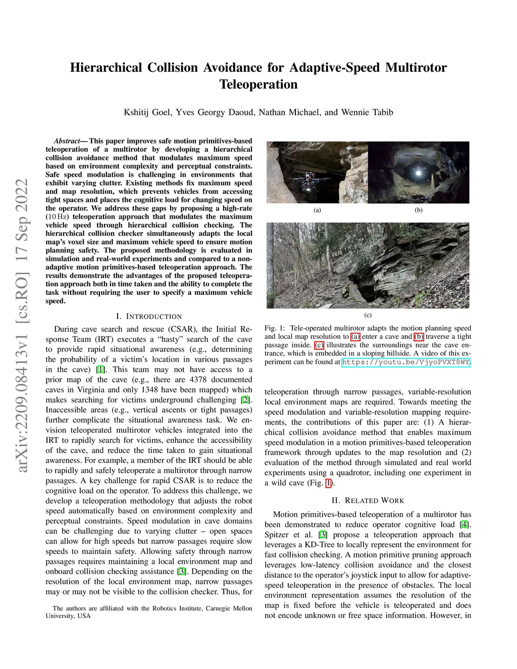 Hierarchical Collision Avoidance for Adaptive-Speed Multirotor