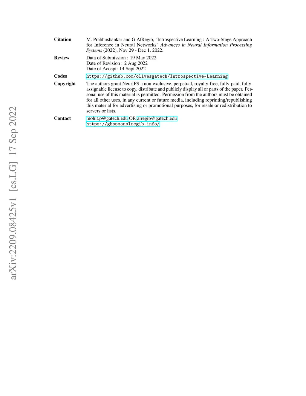 Introspective Learning : A Two-Stage Approach for Inference in Neural