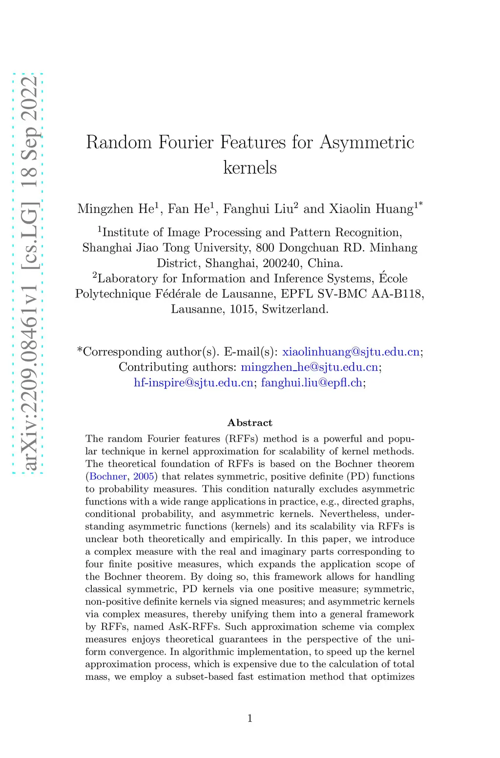 The random Fourier features (RFFs) method is a powerful and popular technique in kernel approximation for scalability of kernel methods. The theoretical foundation of RFFs is based on the Bochner theorem that relates symmetric, positive definite (PD) functions to probability measures. This condition naturally excludes asymmetric functions with a wide range applications in practice, e.g., directed graphs, conditional probability, and asymmetric kernels. Nevertheless, understanding asymmetric functions (kernels) and its scalability via RFFs is unclear both theoretically and empirically. In this paper, we introduce a complex measure with the real and imaginary parts corresponding to four finite positive measures, which expands the application scope of the Bochner theorem. By doing so, this framework allows for handling classical symmetric, PD kernels via one positive measure; symmetric, non-positive definite kernels via signed measures; and asymmetric kernels via complex measures, thereby unifying them into a general framework by RFFs, named AsK-RFFs. Such approximation scheme via complex measures enjoys theoretical guarantees in the perspective of the uniform convergence. In algorithmic implementation, to speed up the kernel approximation process, which is expensive due to the calculation of total mass, we employ a subset-based fast estimation method that optimizes total masses on a sub-training set, which enjoys computational efficiency in high dimensions. Our AsK-RFFs method is empirically validated on several typical large-scale datasets and achieves promising kernel approximation performance, which demonstrate the effectiveness of AsK-RFFs.