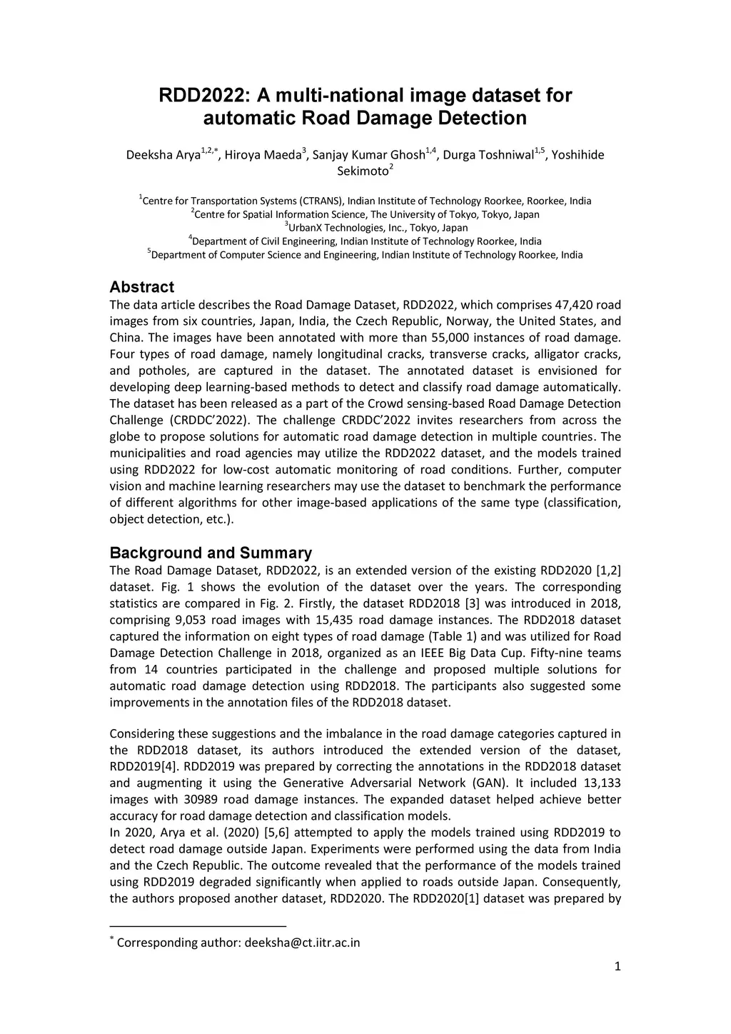 RDD2022: A multi-national image dataset for automatic Road Damage