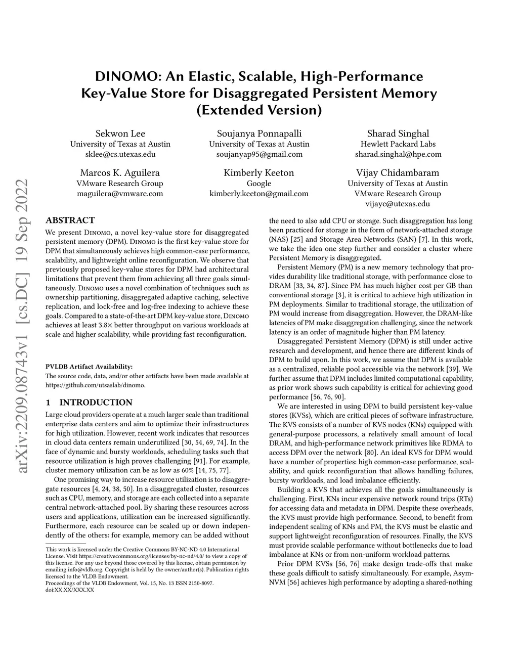 DINOMO: An Elastic, Scalable, High-Performance Key-Value Store for