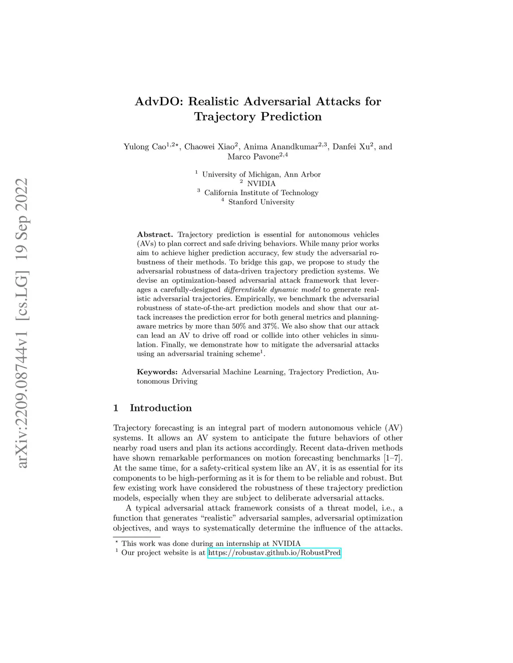 AdvDO: Realistic Adversarial Attacks for Trajectory Prediction