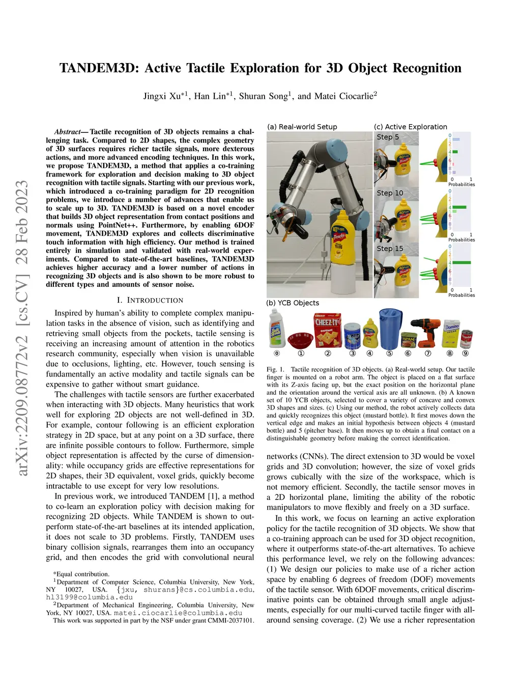 TANDEM3D: Active Tactile Exploration for 3D Object Recognition
