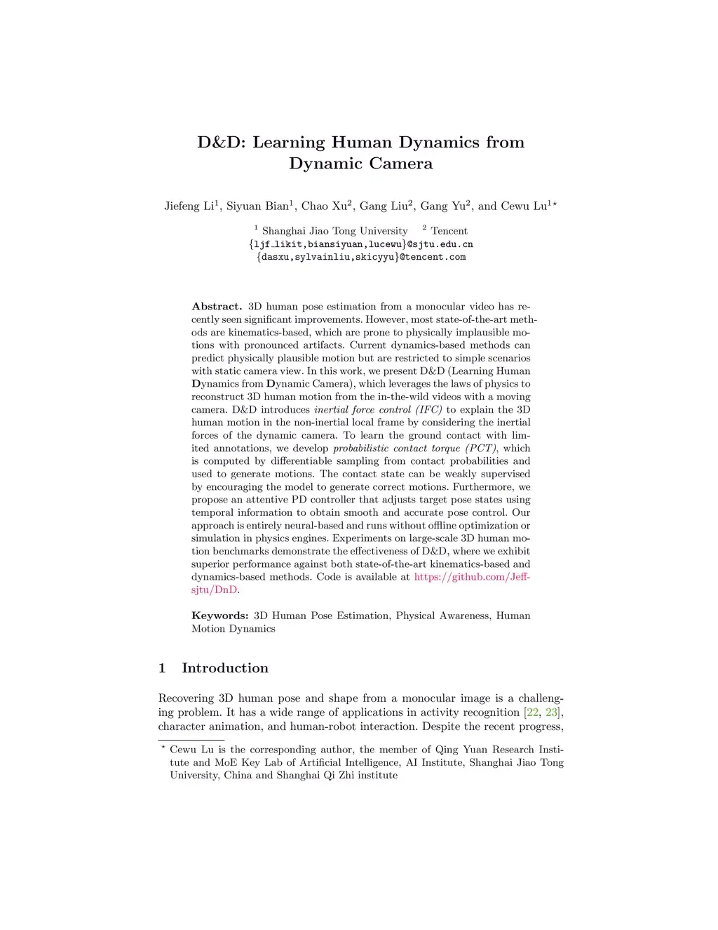 D&D: Learning Human Dynamics from Dynamic Camera