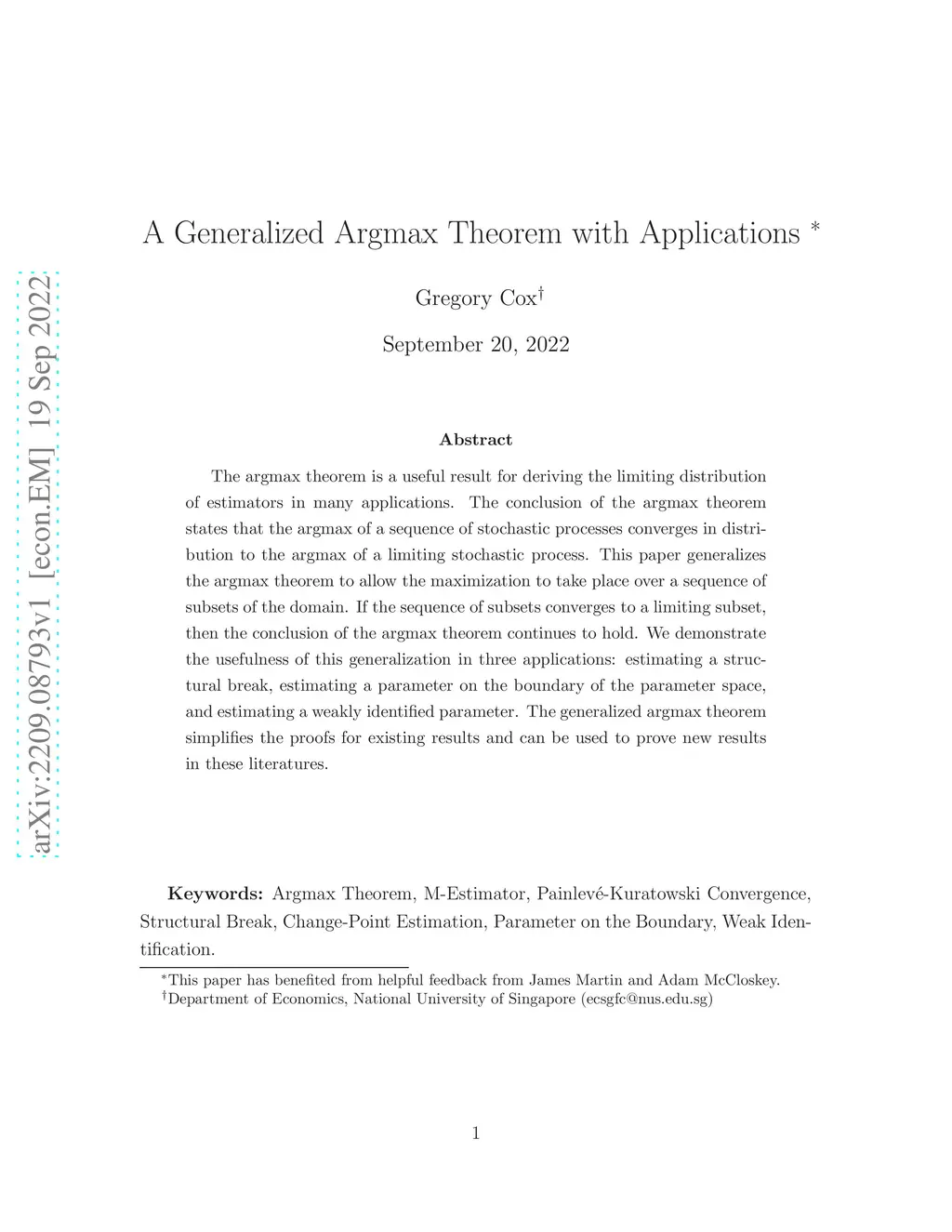 A Generalized Argmax Theorem with Applications