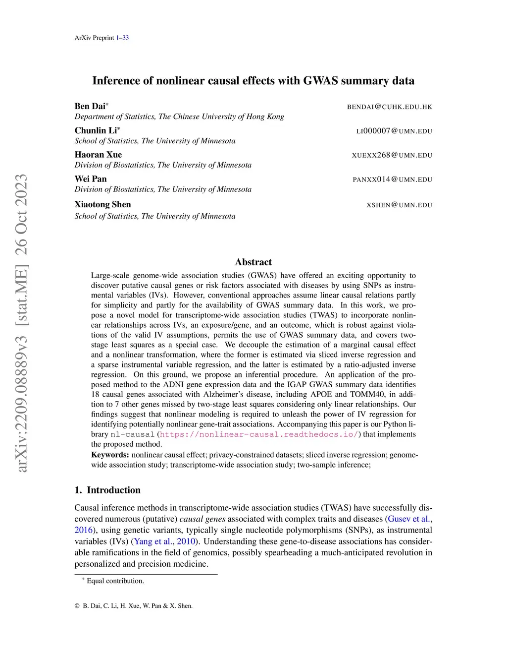 Large-scale genome-wide association studies (GWAS) have offered an exciting opportunity to discover putative causal genes or risk factors associated with diseases by using SNPs as instrumental variables (IVs). However, conventional approaches assume linear causal relations partly for simplicity and partly for the only availability of GWAS summary data. In this work, we propose a novel model {for transcriptome-wide association studies (TWAS)} to incorporate nonlinear relationships across IVs, an exposure, and an outcome, which is robust against violations of the valid IV assumptions and permits the use of GWAS summary data. We decouple the estimation of a marginal causal effect and a nonlinear transformation, where the former is estimated via sliced inverse regression and a sparse instrumental variable regression, and the latter is estimated by a ratio-adjusted inverse regression. On this ground, we propose an inferential procedure. An application of the proposed method to the ADNI gene expression data and the IGAP GWAS summary data identifies 18 causal genes associated with Alzheimer's disease, including APOE and TOMM40, in addition to 7 other genes missed by two-stage least squares considering only linear relationships. Our findings suggest that nonlinear modeling is required to unleash the power of IV regression for identifying potentially nonlinear gene-trait associations. Accompanying this paper is our Python library nl-causal(https://github.com/nl-causal/nonlinear-causal) that implements the proposed method.