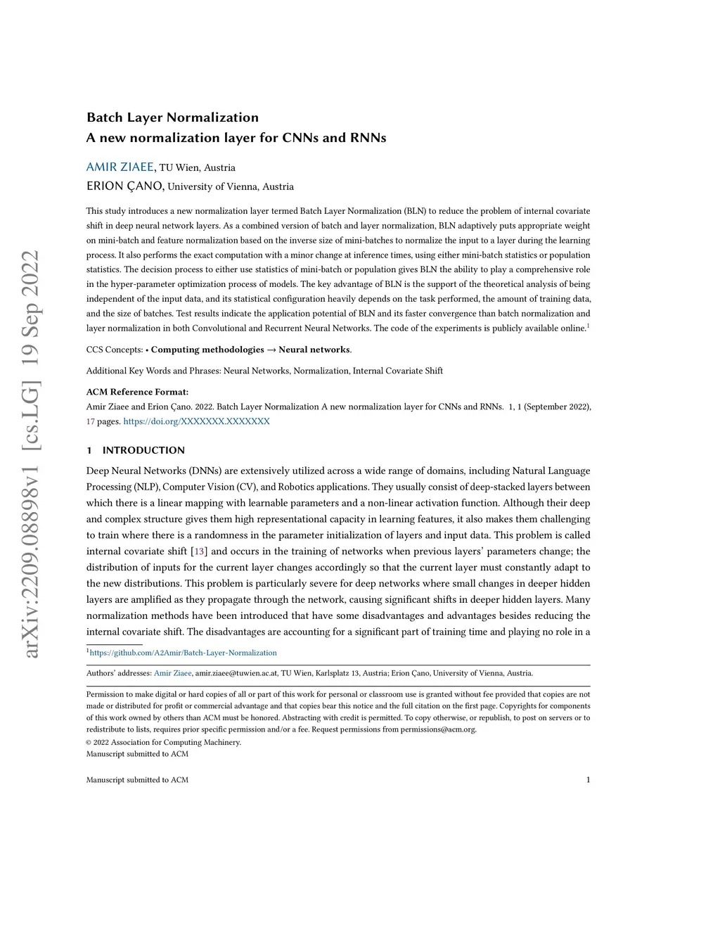 Batch Layer Normalization, A new normalization layer for CNNs and RNN