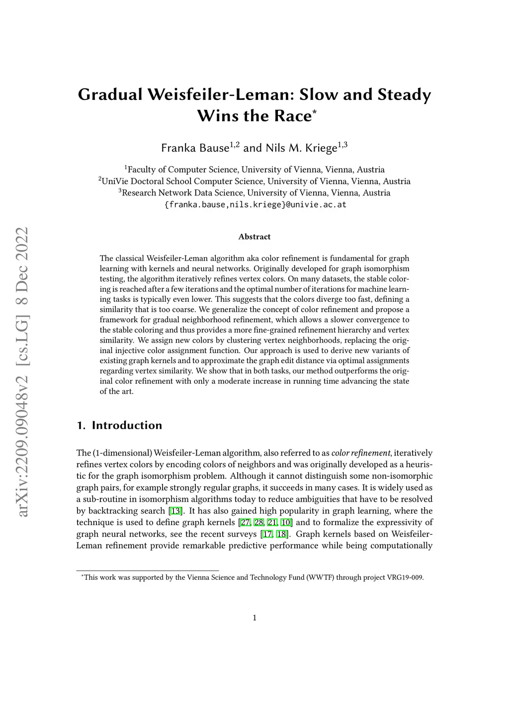 The classical Weisfeiler-Leman algorithm aka color refinement is fundamental for graph learning with kernels and neural networks. Originally developed for graph isomorphism testing, the algorithm iteratively refines vertex colors. On many datasets, the stable coloring is reached after a few iterations and the optimal number of iterations for machine learning tasks is typically even lower. This suggests that the colors diverge too fast, defining a similarity that is too coarse. We generalize the concept of color refinement and propose a framework for gradual neighborhood refinement, which allows a slower convergence to the stable coloring and thus provides a more fine-grained refinement hierarchy and vertex similarity. We assign new colors by clustering vertex neighborhoods, replacing the original injective color assignment function. Our approach is used to derive new variants of existing graph kernels and to approximate the graph edit distance via optimal assignments regarding vertex similarity. We show that in both tasks, our method outperforms the original color refinement with only a moderate increase in running time advancing the state of the art.