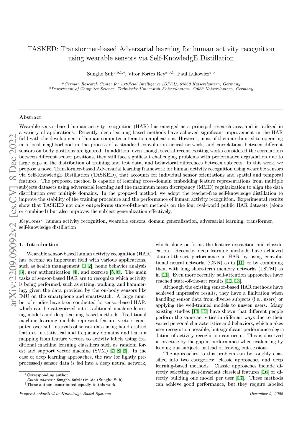 recognition using wearable sensors via Self-KnowledgE Distillation