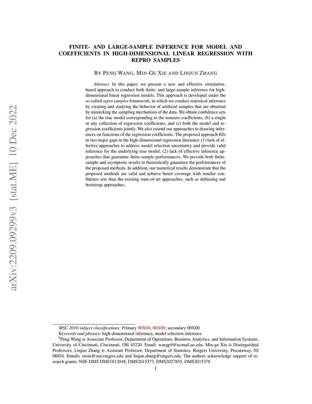 Finite- and Large- Sample Inference for Model and Coefficients in