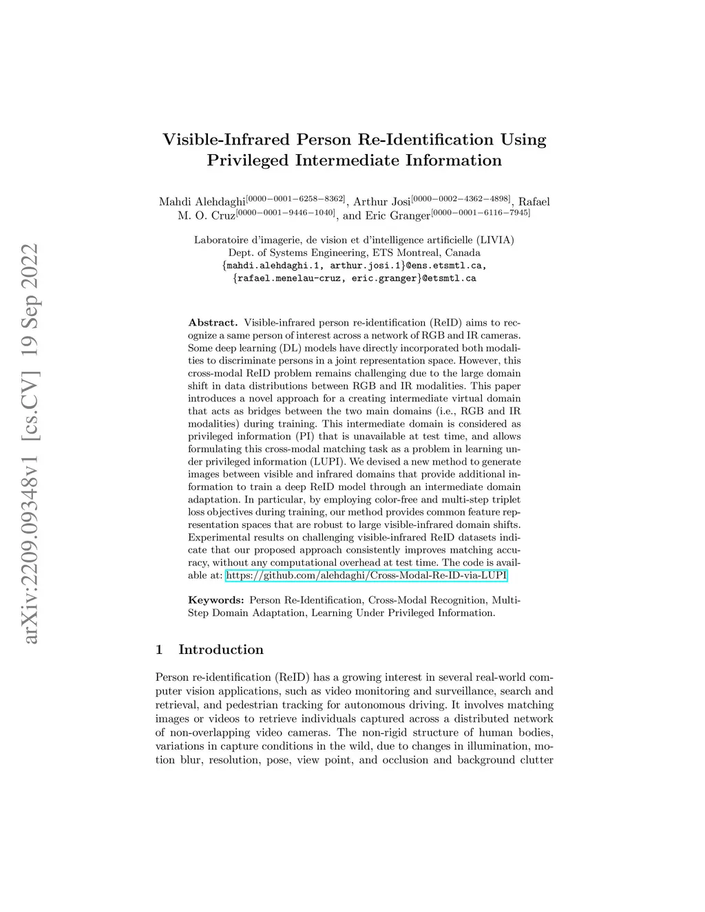 Visible-Infrared Person Re-Identification Using Privileged Intermediate