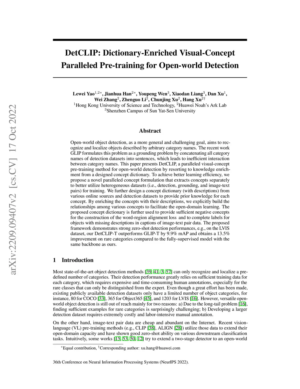 DetCLIP: Dictionary-Enriched Visual-Concept Paralleled Pre-training for