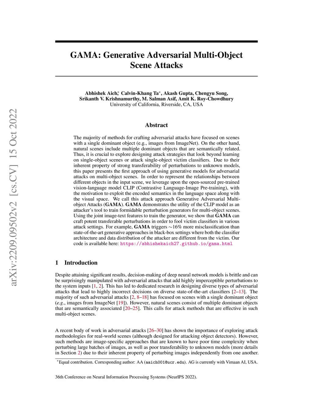 GAMA: Generative Adversarial Multi-Object Scene Attacks