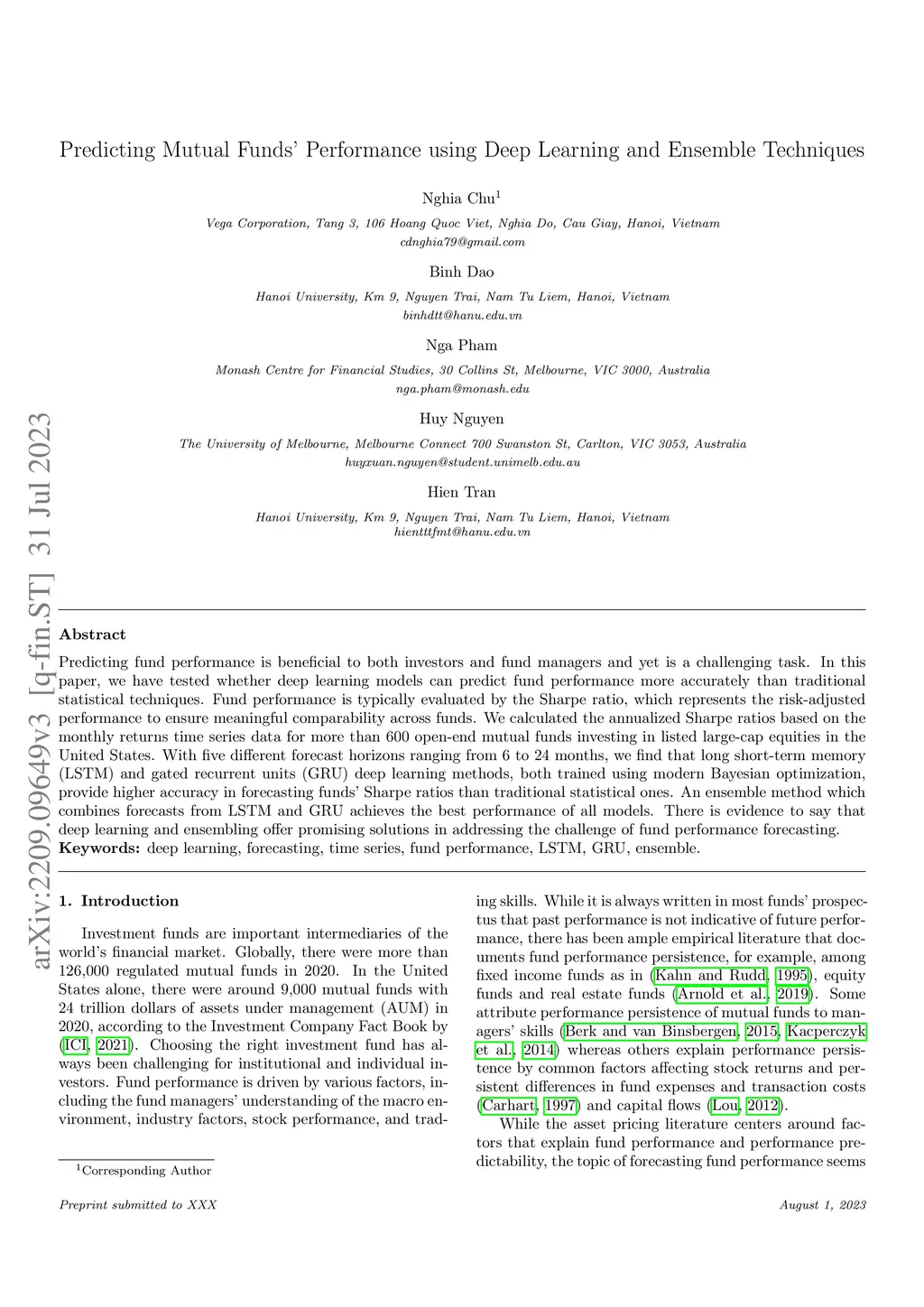 Predicting Mutual Funds' Performance using Deep Learning and Ensemble