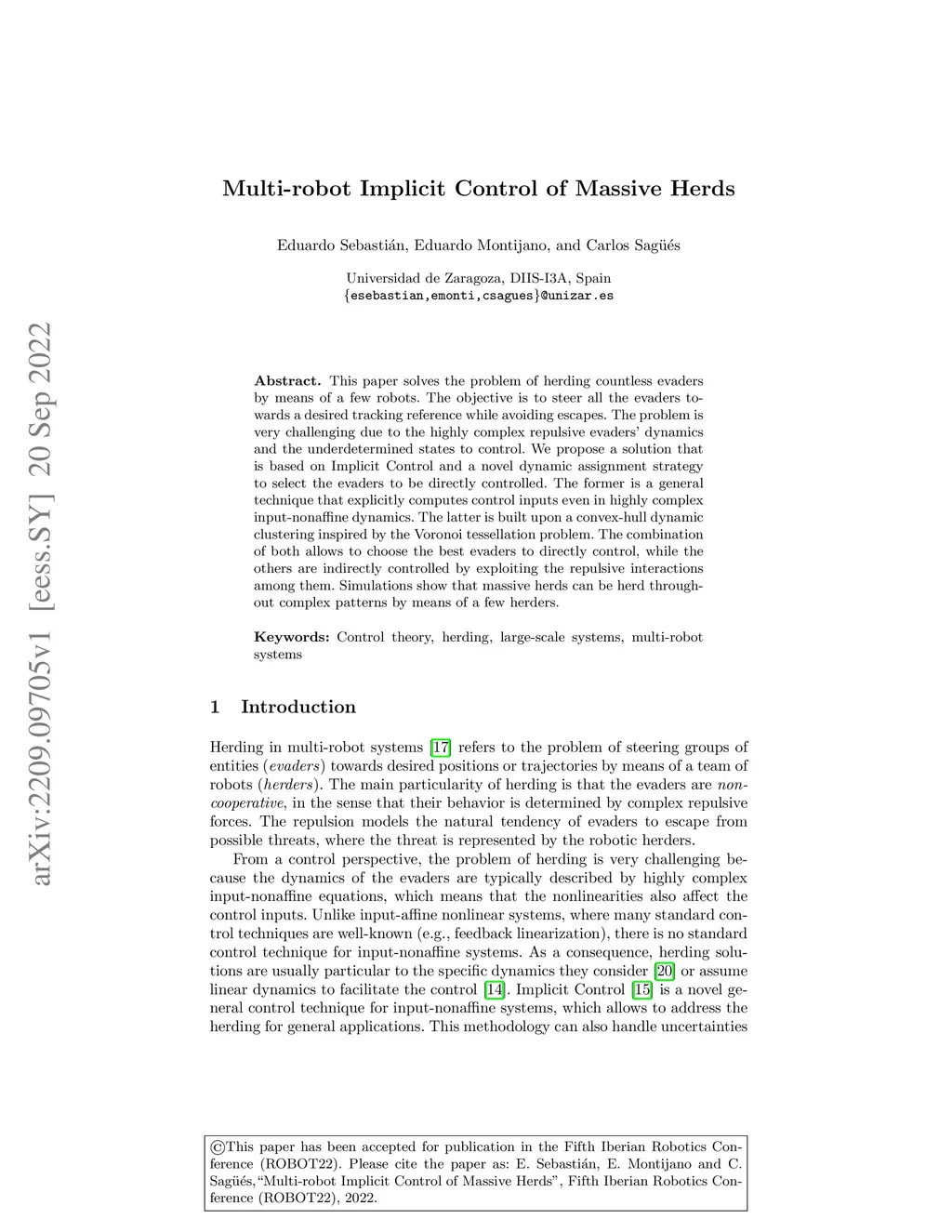 Multi-robot Implicit Control of Massive Herds