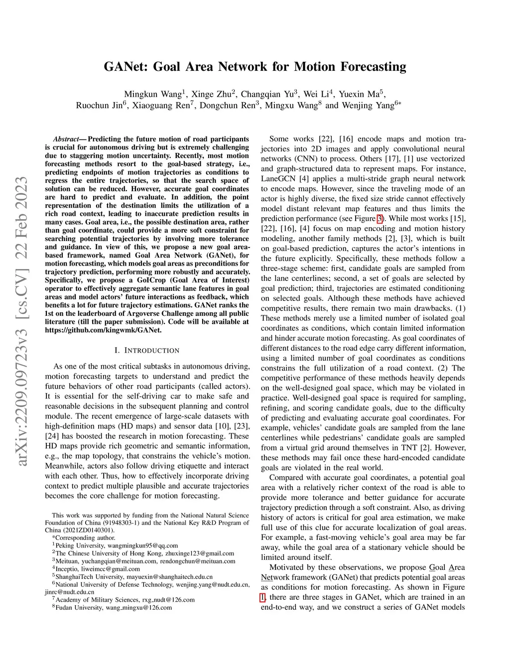 GANet: Goal Area Network for Motion Forecasting