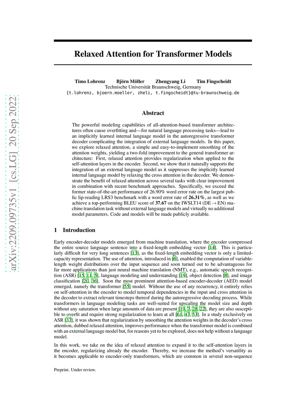 Relaxed Attention for Transformer Models