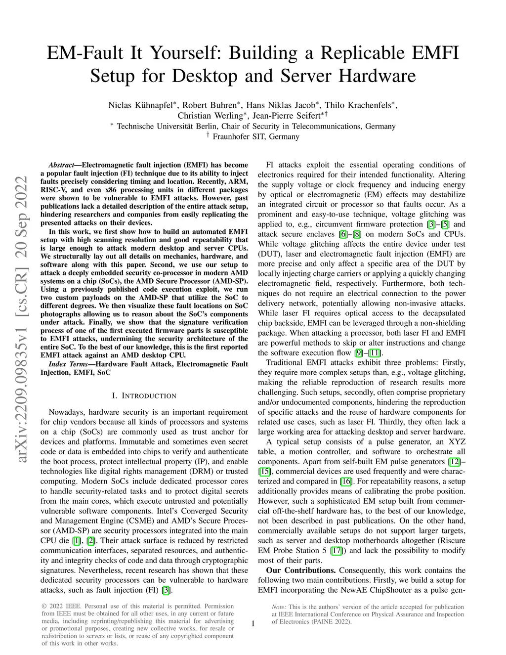 EMFI has become a popular fault injection (FI) technique due to its ability to inject faults precisely considering timing and location. Recently, ARM, RISC-V, and even x86 processing units in different packages were shown to be vulnerable to electromagnetic fault injection (EMFI) attacks. However, past publications lack a detailed description of the entire attack setup, hindering researchers and companies from easily replicating the presented attacks on their devices. In this work, we first show how to build an automated EMFI setup with high scanning resolution and good repeatability that is large enough to attack modern desktop and server CPUs. We structurally lay out all details on mechanics, hardware, and software along with this paper. Second, we use our setup to attack a deeply embedded security co-processor in modern AMD systems on a chip (SoCs), the AMD Secure Processor (AMD-SP). Using a previously published code execution exploit, we run two custom payloads on the AMD-SP that utilize the SoC to different degrees. We then visualize these fault locations on SoC photographs allowing us to reason about the SoC's components under attack. Finally, we show that the signature verification process of one of the first executed firmware parts is susceptible to EMFI attacks, undermining the security architecture of the entire SoC. To the best of our knowledge, this is the first reported EMFI attack against an AMD desktop CPU.
