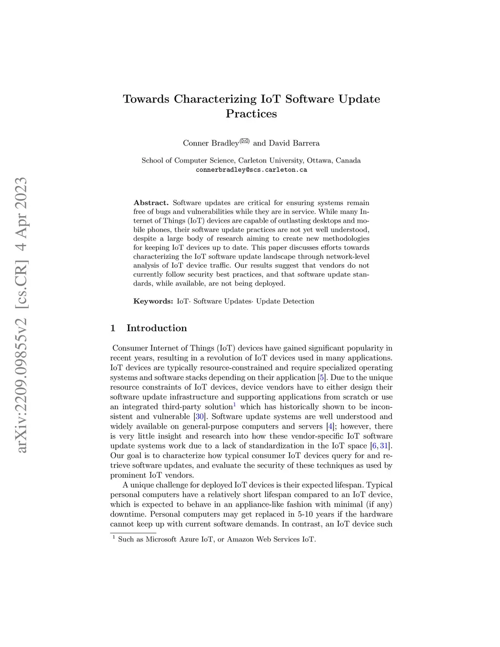 Toward Identification and Characterization of IoT Software Update