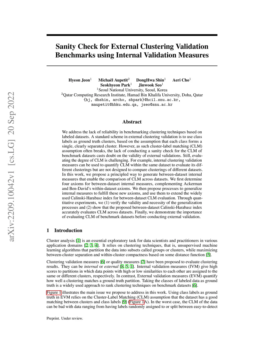 We address the lack of reliability in benchmarking clustering techniques based on labeled datasets. A standard scheme in external clustering validation is to use class labels as ground truth clusters, based on the assumption that each class forms a single, clearly separated cluster. However, as such cluster-label matching (CLM) assumption often breaks, the lack of conducting a sanity check for the CLM of benchmark datasets casts doubt on the validity of external validations. Still, evaluating the degree of CLM is challenging. For example, internal clustering validation measures can be used to quantify CLM within the same dataset to evaluate its different clusterings but are not designed to compare clusterings of different datasets. In this work, we propose a principled way to generate between-dataset internal measures that enable the comparison of CLM across datasets. We first determine four axioms for between-dataset internal measures, complementing Ackerman and Ben-David's within-dataset axioms. We then propose processes to generalize internal measures to fulfill these new axioms, and use them to extend the widely used Calinski-Harabasz index for between-dataset CLM evaluation. Through quantitative experiments, we (1) verify the validity and necessity of the generalization processes and (2) show that the proposed between-dataset Calinski-Harabasz index accurately evaluates CLM across datasets. Finally, we demonstrate the importance of evaluating CLM of benchmark datasets before conducting external validation.