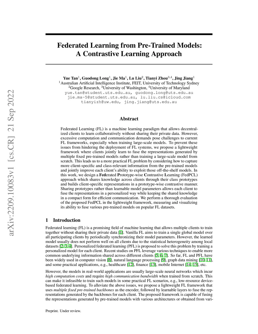 Federated Learning from Pre-Trained Models: A Contrastive Learning