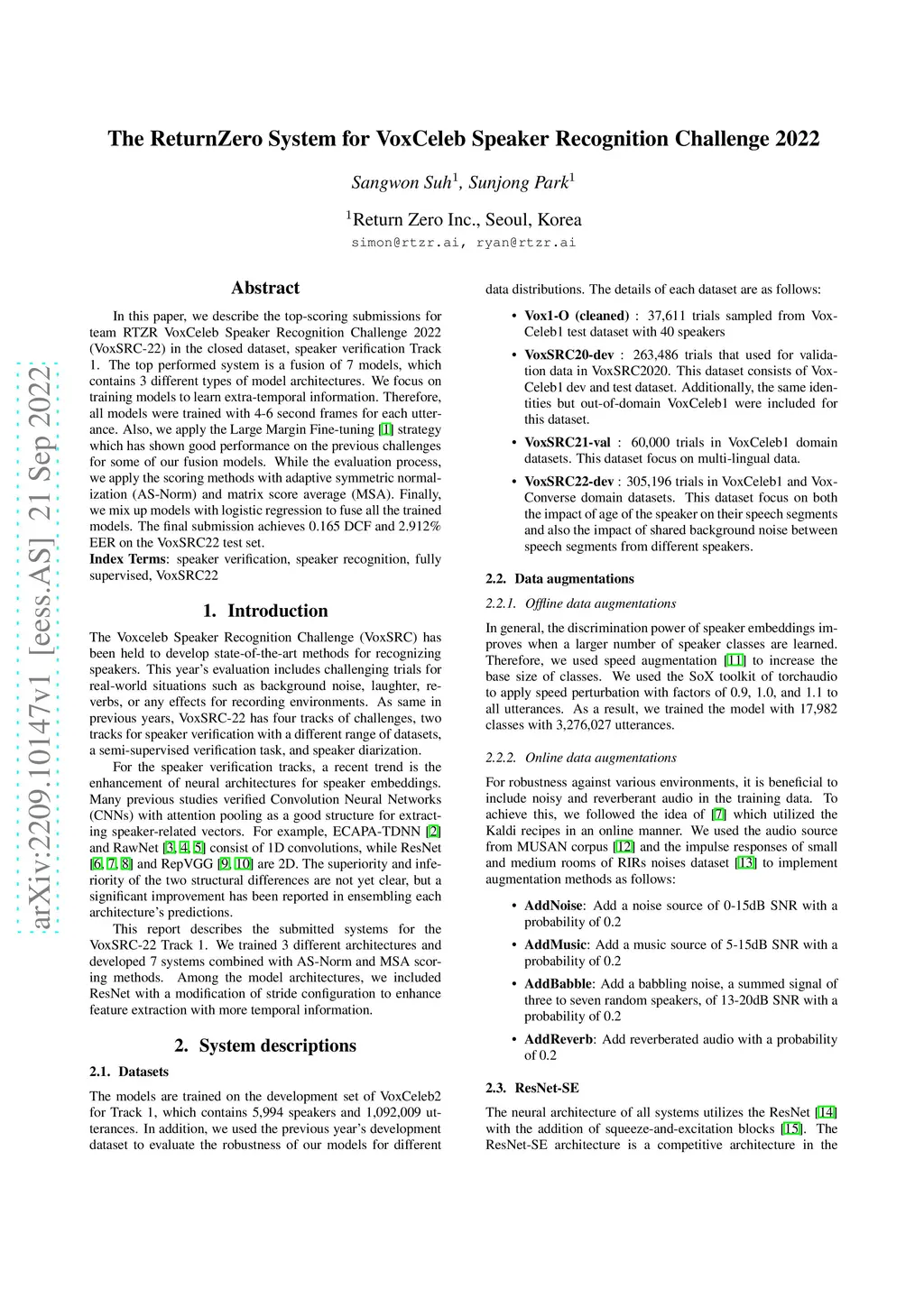The ReturnZero System for VoxCeleb Speaker Recognition Challenge 2022