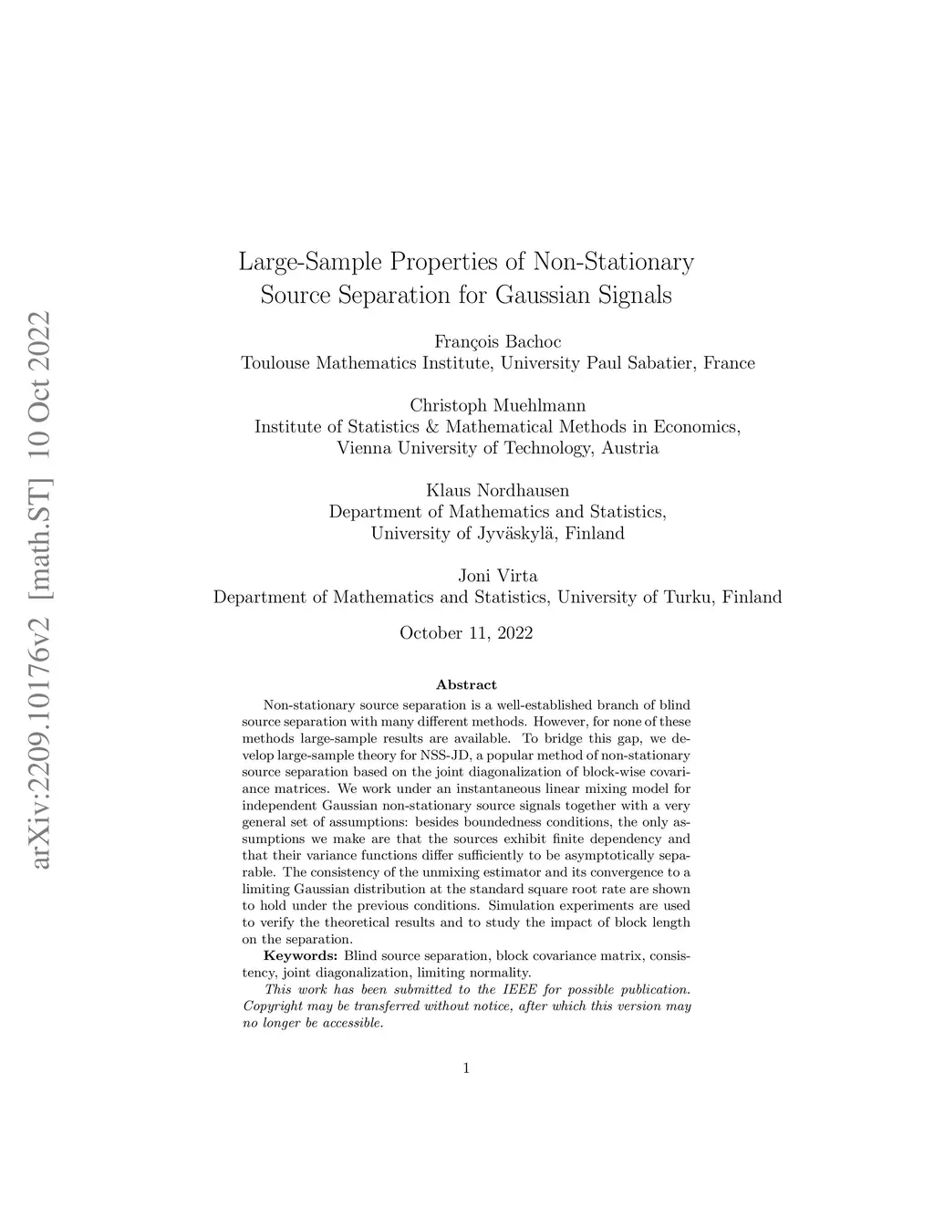 Large-Sample Properties of Non-Stationary Source Separation for Gaussian