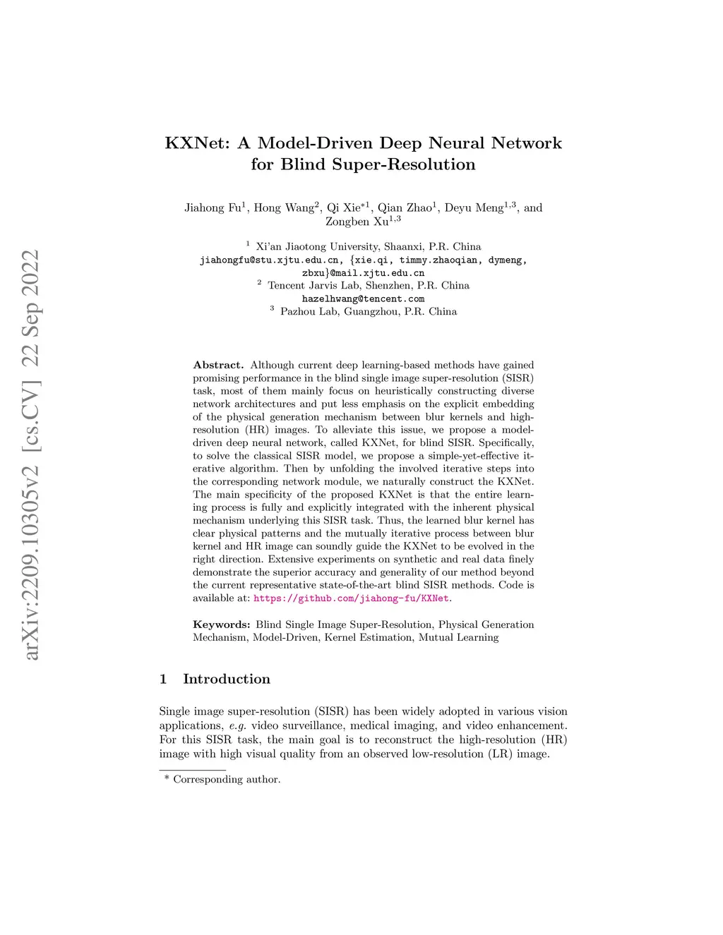 KXNet: A Model-Driven Deep Neural Network for Blind Super-Resolution